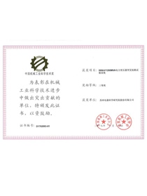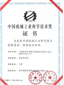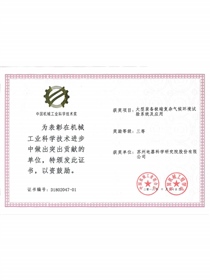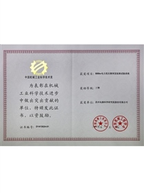 • 中国机械工业科学技术奖证书-科技进步奖三等奖