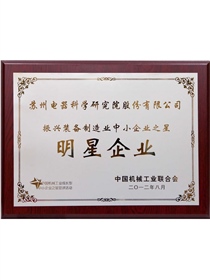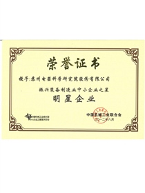 • 振兴装备制造业中小企业之星明星企业(奖状)
