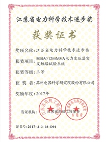 • 2012市科学技术进步三等奖(电力变压器)