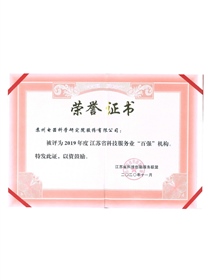 • 2019年度江苏省科技服务业百强机构(证书)