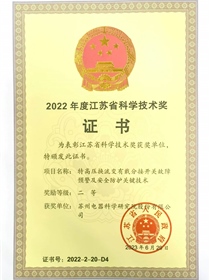 • 江苏机械工业科技进步一等奖