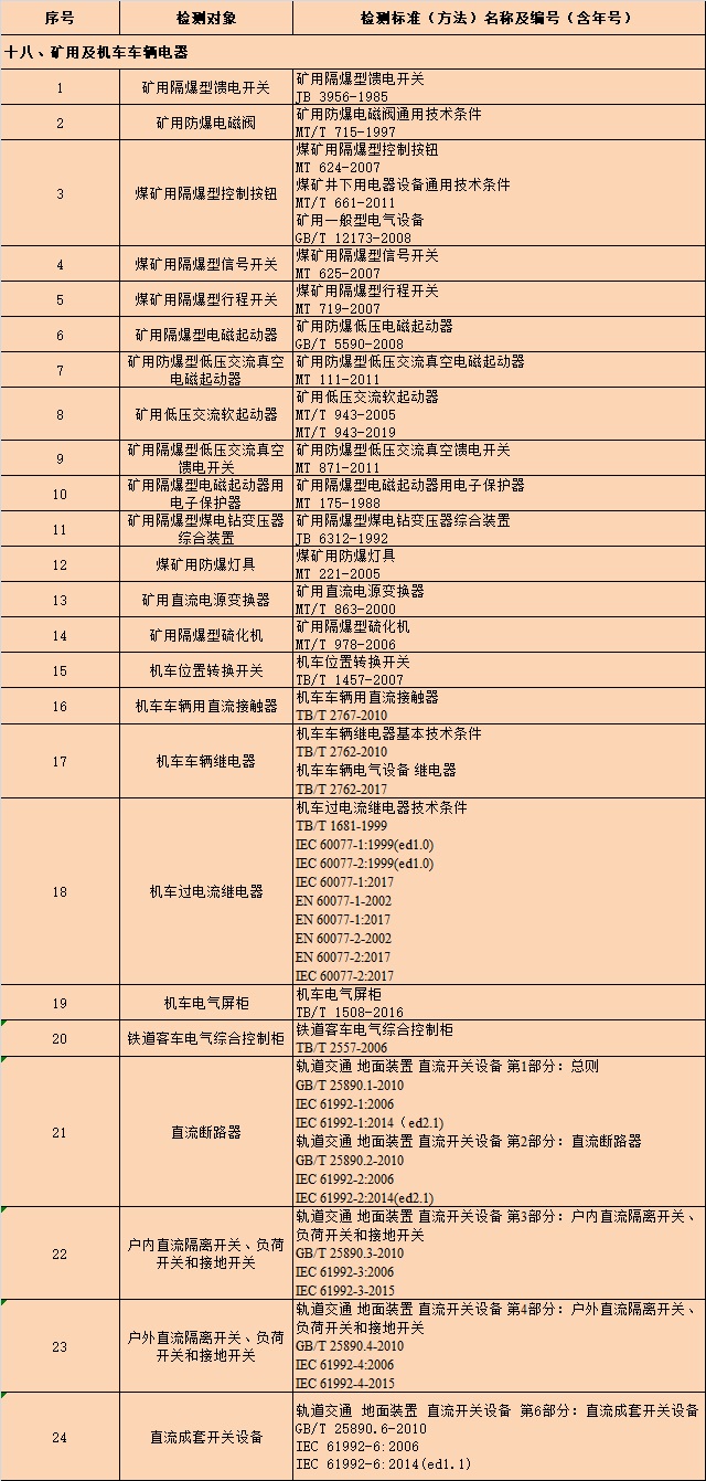 可按照国家标准、行业标准及国际标准开展有关防爆电气类产品的检测工作,为用户提供矿用/ 隔爆型开关、起动器、按钮、灯具、电源变换器、电磁阀、煤电站变压器综合装置等产品的全部电气性能、气候环境、电磁兼容、防护等级试验服务。