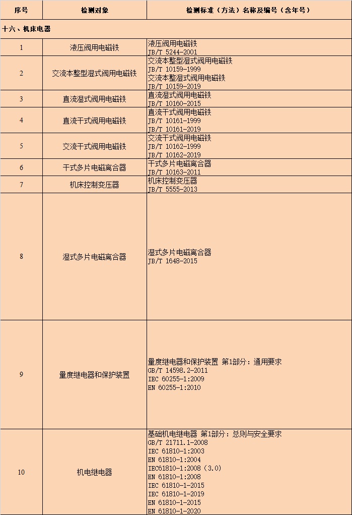 • 机床电器检测——依据国家标准、行业标准,完成有关交直流电磁铁、离合器、控制变压器、继电器等机床电器的全部出厂试验、型式试验和定期试验项目。