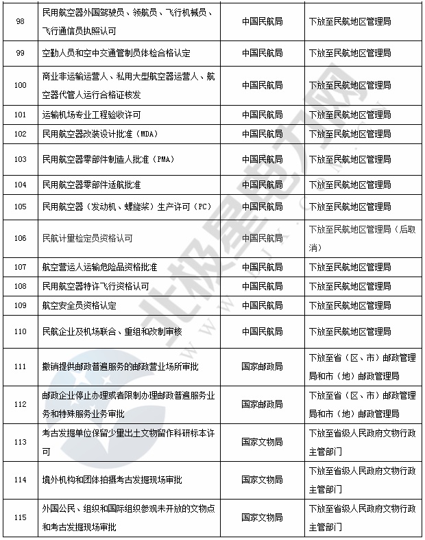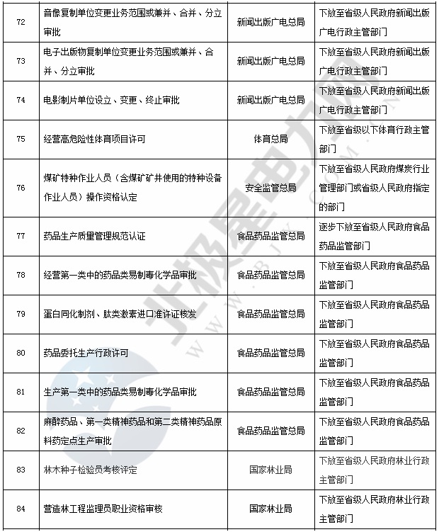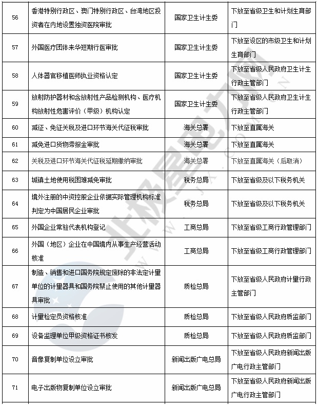 国务院已公布下放的行政审批事项