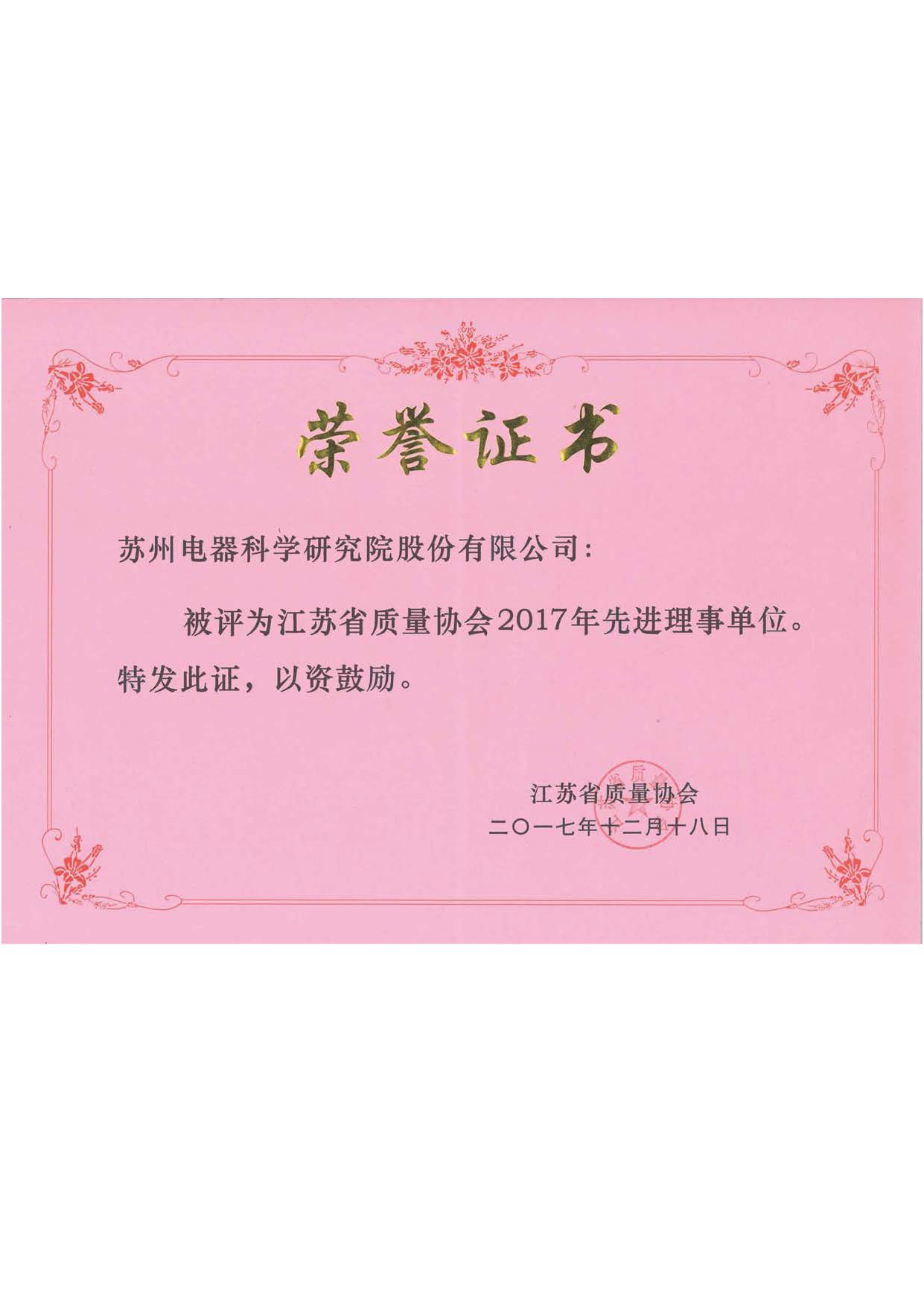 苏州电科院喜获江苏省质量协会先进理事单位