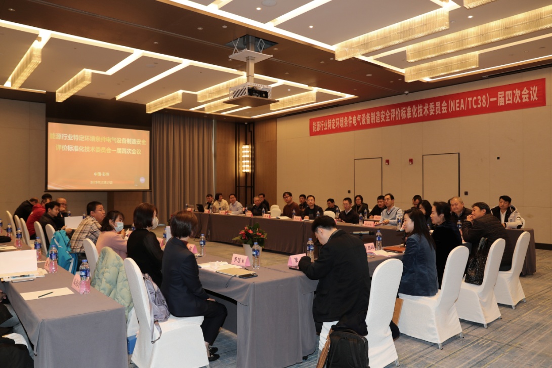 2023年12月13日, 能源行业特定环境条件电气设备制造安全评价标准化技术委员会(NEA/TC38)一届四次会议暨标准审查会在苏州希尔顿逸林酒店隆重召开。参加本次会议的有中国电器工业协会标准化工作委员会、能源行业特定环境标委会的领导、委员及委员单位代表等40余人,其中包括中电协标准化工作委员会常务副理事长兼标委会副主任委员方晓燕、中电协标准化与技术评价中心副主任兼标委会副秘书长果岩、上海电科集团总裁特别顾问兼标委会副主任委员季慧玉等,个别委员通过线上视频参会。