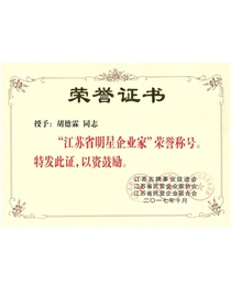 Outstanding Entrepreneur in Jiangsu (Certificate)