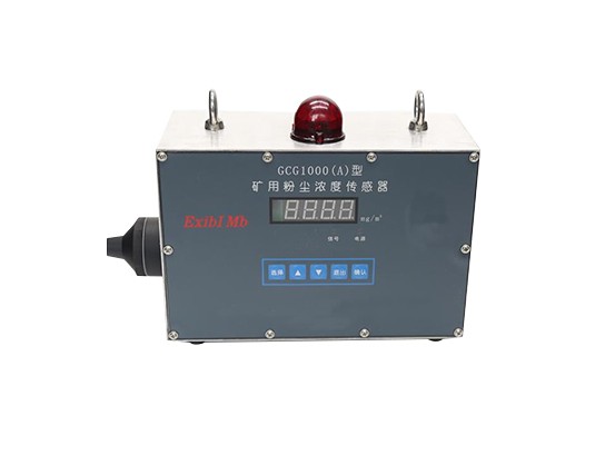 GCG1000(A)矿用粉尘浓度传感器根据光散射法设计,吸收消化了国内外先进的测尘技术,采用红外激光器和进口光电倍增管,将进入暗室里的浮游粉尘在红外激光照射下,在粉尘性质一定的条件下粉尘的散射光强正比于粉尘质量浓度,将散射光强度转换成电信号,通过预置 K值可直接计算出粉尘的质量浓度,供环境监测或其他测控系统使用。其特点是:测量快速准确、灵敏度高、性能稳定、负载能力强,光道受积尘污染影响小,通过预置K值可测量各类粉尘质量浓度,同时可设定粉尘浓度超标报警阀值,粉尘超标时自动声光报警,仪器满足MT/T1102-2009煤矿用粉尘浓度传感器和JJG846-2015粉尘浓度测量仪检定规程及GB3836.4-2010标准中Exibl Mb等级(矿用本质安全型)防爆设计的测量仪器。