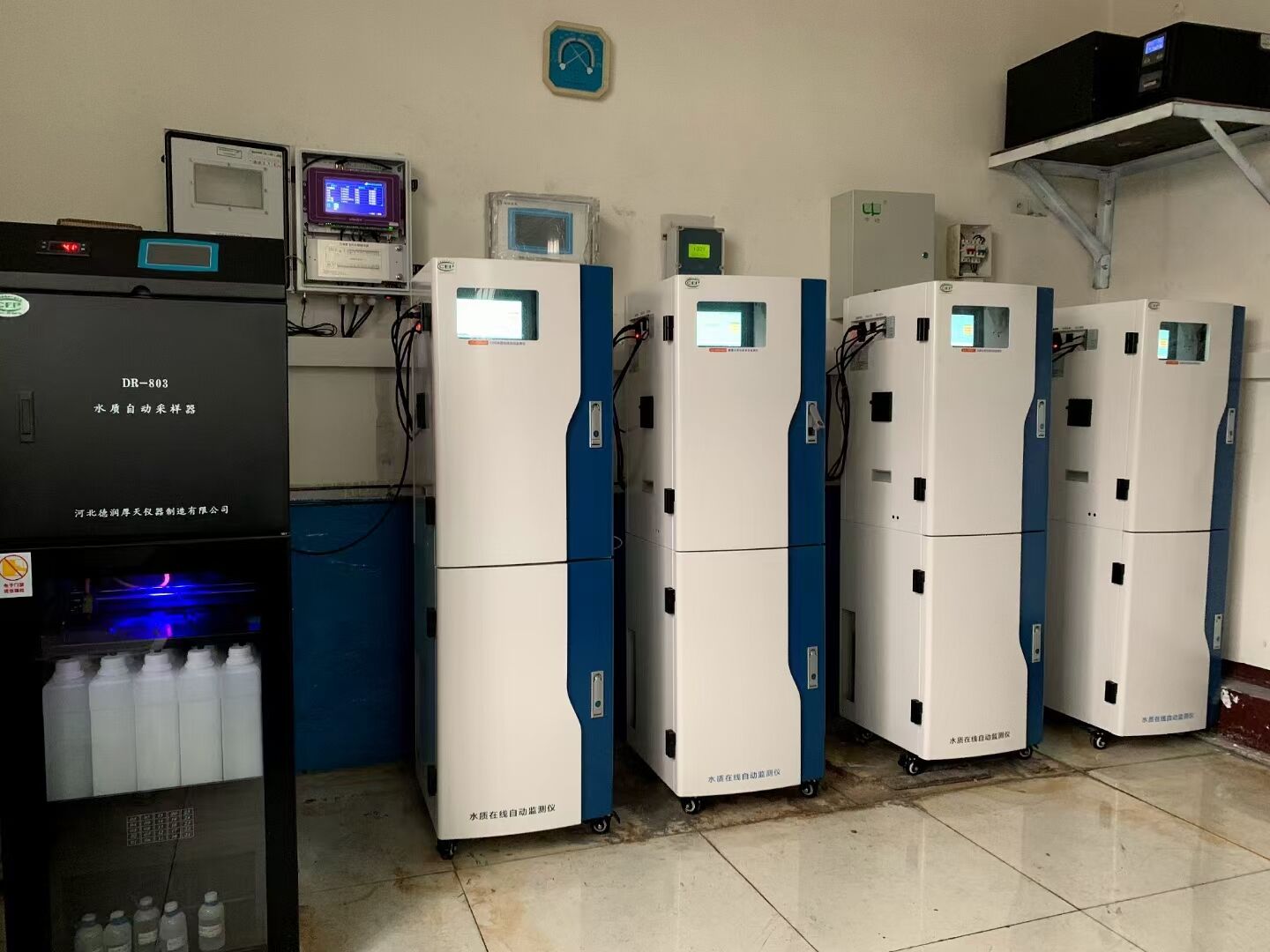 (4) 具备可扩展功能,水站预留不少于 4 台设备的接水口、排水口以及水样比对实验 用的手动取水口。
